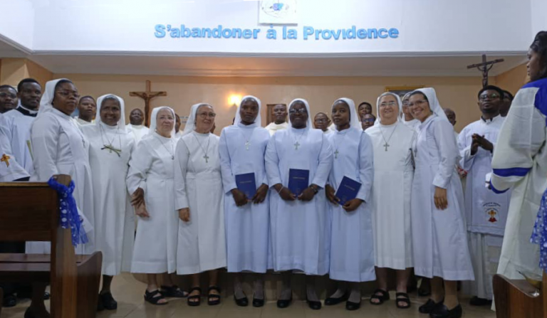 Nella cornice luminosa della Solennità di San Giuseppe, Patrono della Chiesa Universale e custode della Sacra Famiglia, la Chiesa congolese e la Famiglia Guanelliana hanno vissuto un momento di singolare intensità di grazia.  Chimène, Félicité e Tahiti — hanno emesso la Professione Religiosa nelle mani della Vicaria generale Suor Neuza M. Giordani, entrando a far parte a pieno titolo della Congregazione delle Figlie di Santa Maria della Provvidenza. Le tre giovani hanno pronunciato i voti di castità, povertà e obbedienza, compiendo un atto liturgico e canonico di totale consegna di sé a Dio.
